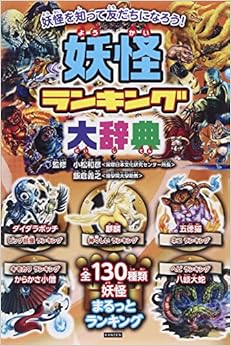 妖怪ランキング大辞典 (日本語) 単行本(ソフトカバー) – 2014/11/21 - 大ヒット前作『妖怪キャラクター大辞典』につづく第2弾!! 妖怪を知って友だちになろう! 妖怪おもしろランキング!! 強い! 怖い! ふじぎな妖怪たち全130体の妖怪たちによる "ビッグ妖怪" "キモカワ" "神々しい""暴れん坊"などの「妖怪おもしろランキング」を大発表!! あんな妖怪からこんな妖怪までぞくぞく場します!! この本さえ読めば、妖怪のことがバッチリ覚えられます!! ぜんぶおぼえて妖怪はかせになろう!!